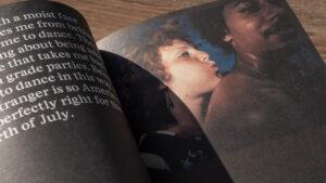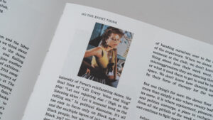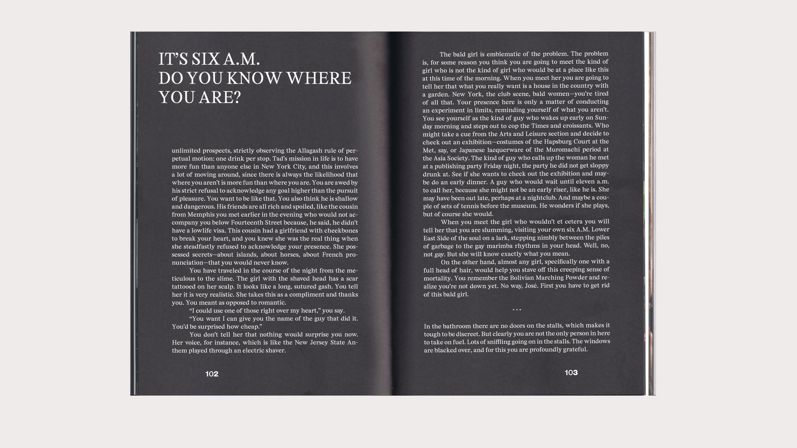 Spread from Bright Lights, Big City by Jay Mclnerney, in On the Dance Floor, designed with Chris Wu for A24.