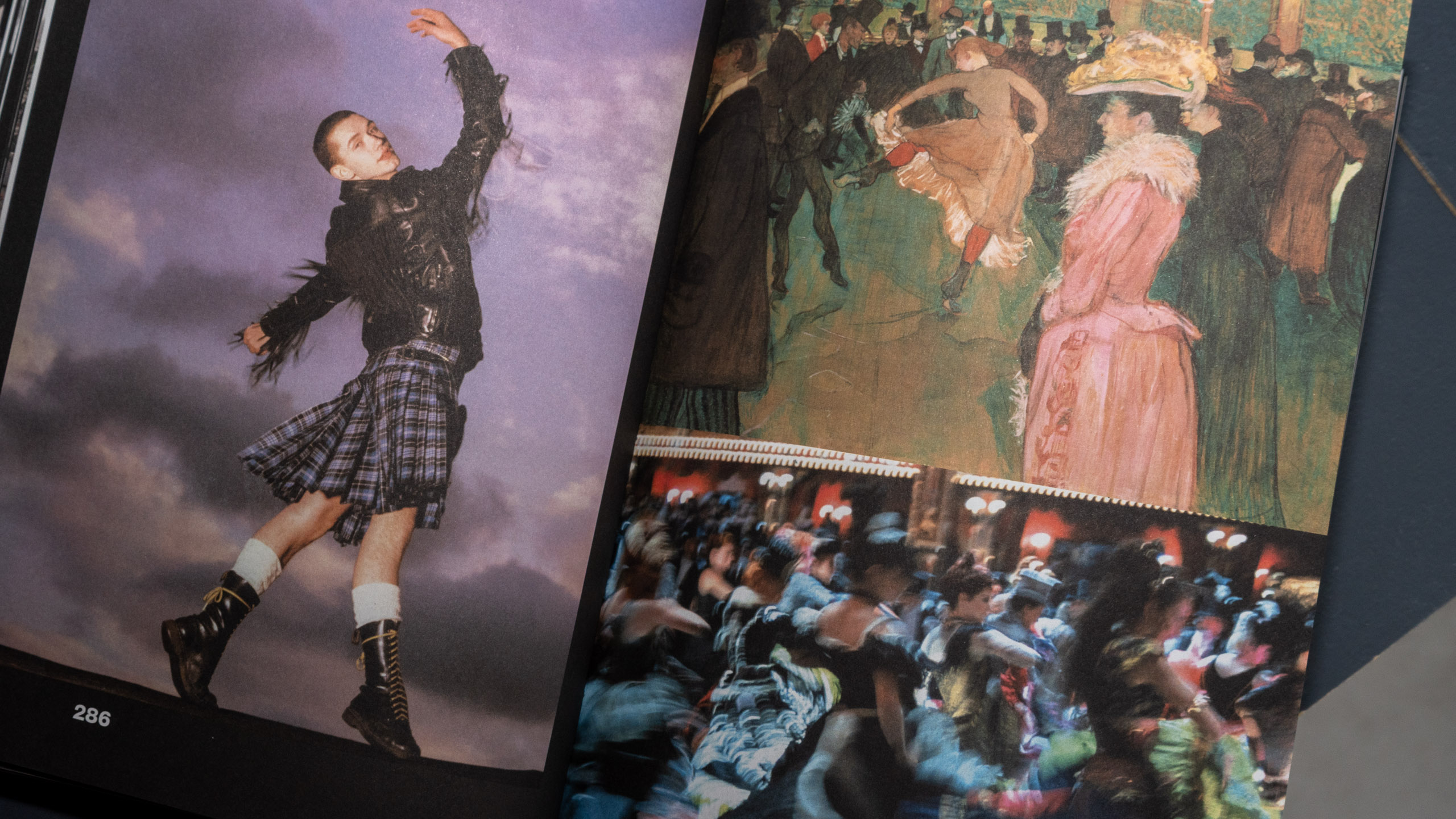 Crops featuring Michael Clark in a publicity photograph by Richard Haughton (1986); Moulin Rouge!, Baz Luhrmann (2001); and At the Moulin Rouge: The Dance, Henri de Toulouse-Lautrec (1890), in On the Dance Floor, designed with Chris Wu for A24.