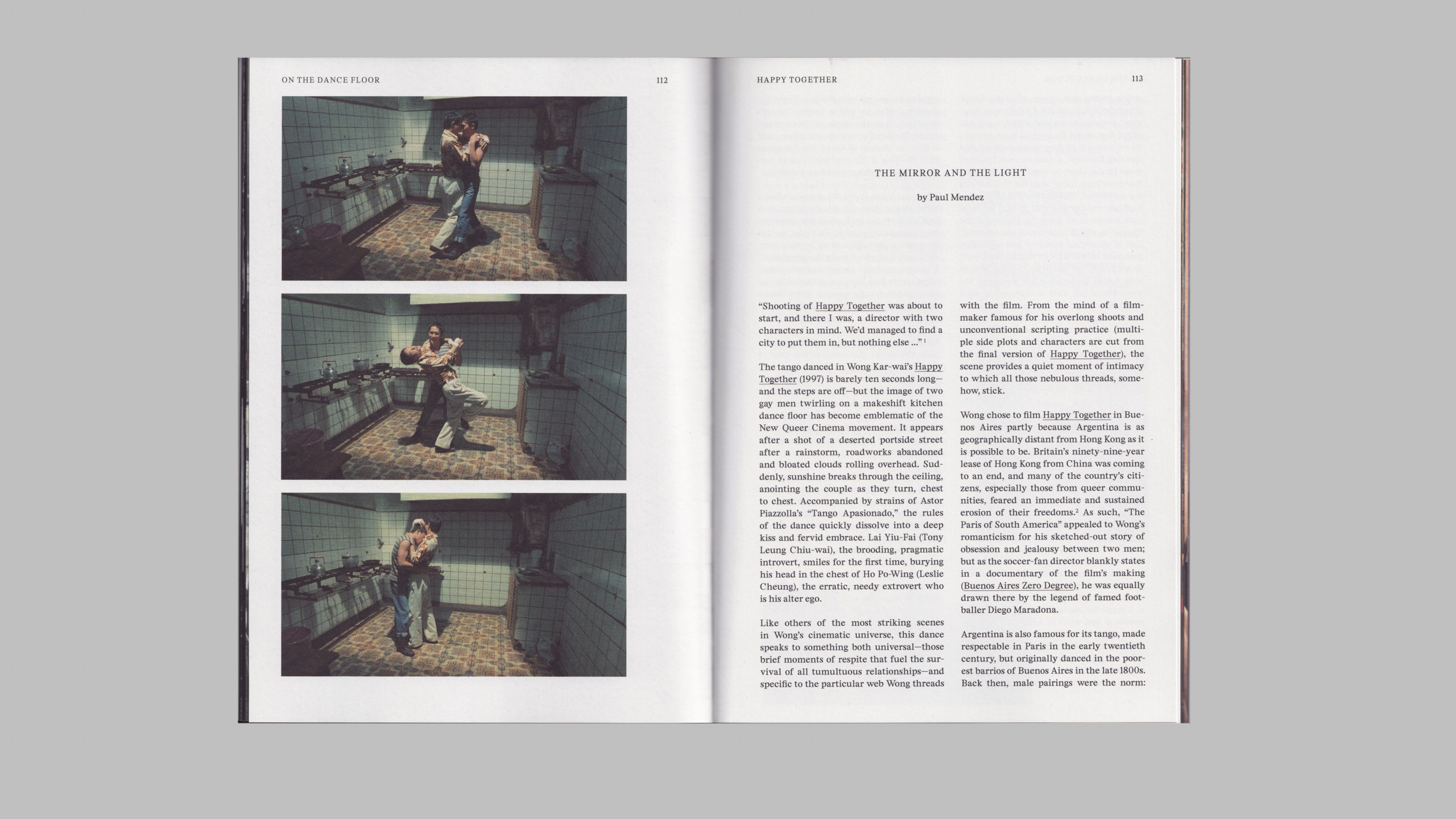 Spread from Happy Together, Wong Kar Wai (1997), in On the Dance Floor, designed with Chris Wu for A24.